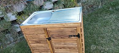 Lavandino da esterno. Utilissimo per cortile, orto o giardino. È un mobile che arreda il vostro spazio all'aperto. Se metti un annaffiatoio nello scarico ricicli pure l'acqua per piante e fiori !!! Si trova a Bologna (non spediamo)