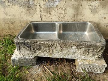 Lavandino inox rivestito con calcestruzzo. Finitura rustica. Misure: 85x47 h20.