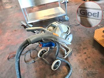 lavasciuga Gioel usata, si tratta di un elettrodomestico di marca Gioel utilizzato per aspirare, lavare e igienizzare superfici come: piastrelle, divani, moquette, etc. è funzionante ma il tappo di rabbocco dell'acqua è rotto.