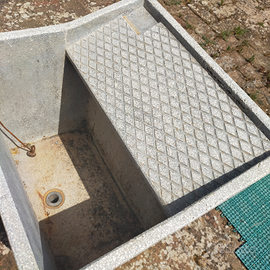 Per inutilizzo vendo lavatoio piletta per esterni e giardini in graniglia levigata vasca cm. 25x 60 altezza 75. Come da foto ha un angolo scheggiato che non ne pregiudica l'uso.