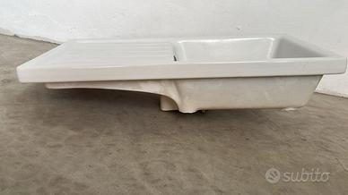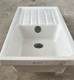 Lavello in ceramica Pozzi Ginori da incasso, con 1 vasca e gocciolatoio. Rettangolare, colore bianco. Reversibile.