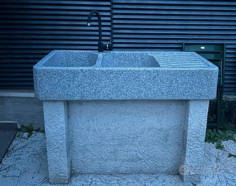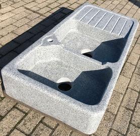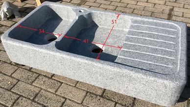 È scavati da un massello di granito grigio chiaro, molto più resistente e durevole del marmo e della pietra. Non è di cemento, graniglia o polvere di marmo. Non soffre il gelo ed è ideale sia per interni che per esterni.