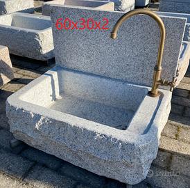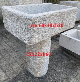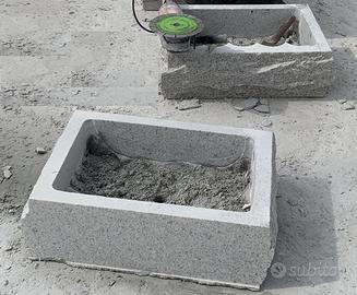 Sono scavati da massello di granito grigio o rosa naturale, sono molto più resistente e durevole del marmo e della pietra. Non sono di cemento, graniglia o polvere di marmo. Non soffrono il gelo ed sono ideali sia per interni che per esterni.
