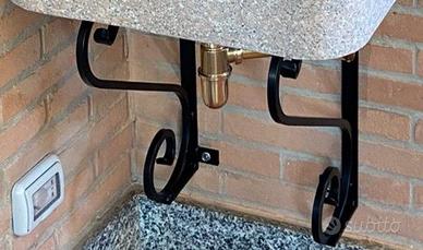 - Coppia di sostegni in ferro battuto zincato caldo e poi verniciato, cm 50x38: 98 euro/coppia.