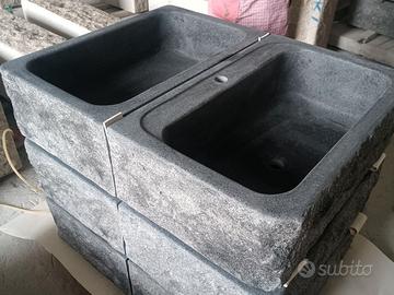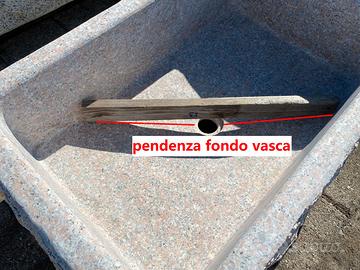 La vasca è levigata opaca. I tre lati esterni sono a spacco ed il lato posteriore è al taglio.