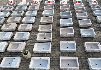 Sono scavato da un massello di granito grigio, rosa o beige naturale, sono molto più resistente e durevole del marmo e della pietra. Non sono di cemento, graniglia o polvere di marmo. Non soffrono il gelo, ed è ideali sia per esterni che per interni.