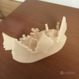 paesaggio dì montagna con quattro abeti e cinque cervi tutto in legno massello artigianale