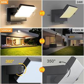 ledmo 60W Applique da Parete Esterno/Interno 360° Lampade da Esterni Regolabile Applique Esterno per Terrazza Corridoio Giardini, Nero, 126 LEDs, 5000 Lumen, Bianco Caldo 3000K, IP65 [Classe di efficienza energetica E]