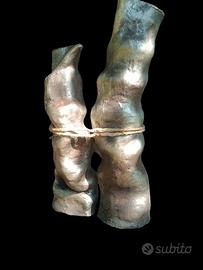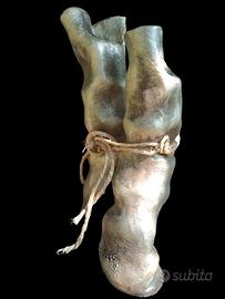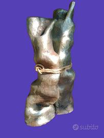 scultura in terracotta, tie me patinata e cerata corda in canapa