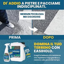 EASIHOLD Rocks - Legante per Ghiaia XL da 5 Litri per incollare Pietre, Corteccia e Ghiaia su Bordi, Cortili e vialetti del Giardino. Dura Fino a 3 Anni, Non tossico Pronto all'Uso.Trattiene e fissa le pietre sciolte: nuove o esistenti, Easihold terrà insieme le pietre da 4 a 20 mm quando viene applicato e lasciato asciugare per 48 ore in buone condizioni atmosferiche (15° +). Il diametro di 4-10 mm è consigliato per il traffico pedonale (le pietre più grandi avranno un legame minore) Versa, spruzza, mescola a mano: 3 semplici modi per tenere le pietre in posizione! INIBISCE LA CRESCITA DI MUSCHI E ALGHE - Easihold ricopre e protegge le pietre, ma non crea un aspetto lucido/alterato