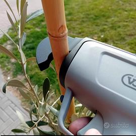 IN VENDITA NUOVA LEGATRICE ELETTRONICA A BATTERIA KV 5. PER LEGARE VITI . PIANTE DA FRUTTO. PER ORTO. GIARDINO. RECINZIONI. FERRO. LEGNO.. Legatrice per tralci a batteria Volpi KV5 motore 40 W brushless - n. 2 batterie 14,4V 2,0 Ah e caricabatterie - n. 2 bobine incluse - valigetta inclusa. La Legatrice a batteria Volpi KV5 è uno degli attrezzi migliori per legare e mettere in ordine i tralci della vigna con precisione; l'utilizzo della legatrice a batteria è diventata fondamentale per eseguire lavori impegnativi nel minor tempo possibile. La legatrice KV5 ha la struttura ergonomica, maneggevole, in grado di lavorare per sessioni prolungate senza incertezze; la legatura è regolabile in 4 diverse posizioni secondo il tipo di tralcio da sistemare. L'alimentazione a batteria da 14,4V 2,0 Ah garantisce un'ampia autonomia di lavoro e una sensibile riduzione dei tempi e della fatica fisica. La struttura della Volpi KV5 permette di sostituire la bobina con estrema semplicità; la tecnologia con magneti controlla la tensione del filo con estrema precisione; inoltre è così realizzata: Motore 40 W brushless, senza spazzole di sfregamento, vivace, dinamico n. 2 batterie da 14,4 V 2,0 Ah agli ioni di litio, ricaricabili, che consentono di lavorare per l'intera giornata; le batterie non hanno l'effetto memoria e possono essere ricaricate in 2-3 h con il caricabatterie incluso Accessori in dotazione: valigetta, n. 2 bobine di filo da 90 mt cadauna, fondina, kit di manutenzione e forbici La valigetta in plastica pesante è suddivisa in spazi ben organizzati in cui mantenere tutti gli accessori in ordine e a portata di mano.. RITIRO PRESSO NOSTRA SEDE A LAZISE LAGO DI GARDA VR CON PAGAMENTO ALLA CONSEGNA OPPURE POSSIBILITÀ DI SPEDIZIONE CON SPESE A CARICO DEL COMPRATORE con spedizione pagamento anticipato tramite bonifico bancario PER INFORMAZIONI TELEFONO O WHATSAPP 345 297 5604 NICOLA LAZISE LAGO DI GARDA VR PER TELEFONO SONO DISPONIBILE DAL LUNEDÌ AL SABATO