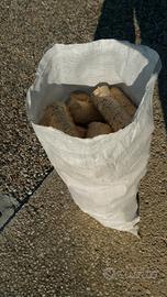Tronchetti di legno pressato. Si tratta di legna secca ad alto potere calorico senza umidità. Materiale con buon rapporto qualità/prezzo da utilizzare per riscaldamento in camini chiusi e/o stufe economiche. Tronchetti di trucioli di legno pressati. Il bricchetto viene pressato a 150 ATM con una particolare pressa e non viene aggiunto nessun tipo di collante, prodotto assolutamente ecologico. A parità di peso hanno un potere calorico superiore alla legna. Possono essere utilizzati anche come avvio o per legna molto umida. Il prezzo è di 4,00 euro ogni sacco, che pesa mediamente 18kg.