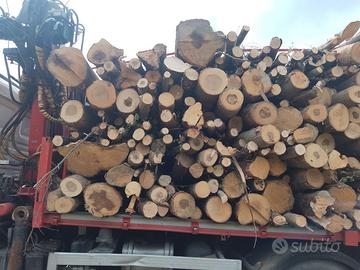 -Legna da ardere di essenze diverse ( carpino, rovere, castagno ecc.) tagliata e spaccata o in barre da 2 metri.