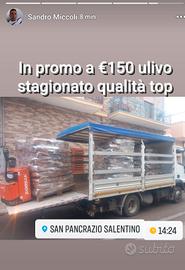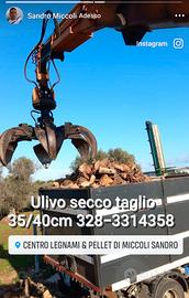 sveglia tagliata 35/40 cm, spacchettata, ulivo 100% locale senza radici, per carichi minimi di 50 quintali al prezzo di €11, possibilità di sistemazione a domicilio della legna pagamento alla consegna con carta bonifico contanti Per info e ordini 328 33 14 358