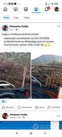 legna sarda 20€alquintale 125 metro cubo regalo 3 fascine grandi ogni 2 metri cubi più piccola aggiunta x il viaggio secondo la distanza, legna sarda disponibile a settembre. legna di eucalipto 10€al quintale 90€ metro cubo abbondante più piccola aggiunta x il viaggio disponibile a maggio,legna x barbecue di ogni misura il prezzo secondo quello che vedete in foto, contatto preferisco su WhatsApp 3313510906