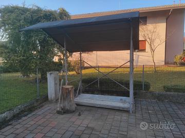 Vendo struttura metallica adatta per stoccaggio legna o attrezzatura da giardino. Dimensioni 185x115 altezza 180/190 . Contiene anche 25/27 quintali se ben sistemata. Facilmente migliorabile esteticamente con perline legno o pvc .