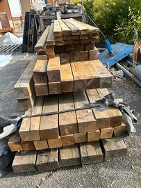vari tipi di travi e listelli, legno di pino trattato in autoclave.