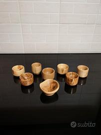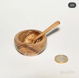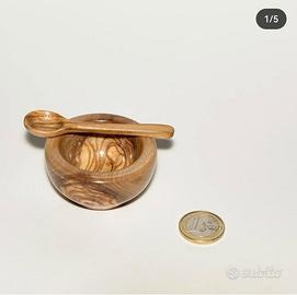 Mini ciotoline portasalse, realizzate in legno di ulivo. Il prezzo si riferisce ad un solo pezzo escluso il cucchiaino... Quest'ultimo viene 2€.