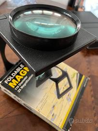 Nuova in confezione originale, LENTE DI ingrandimento da tavolo pieghevole, con scala graduata, alloggiamento mani per realizzazione di lavori di precisione e miniature