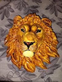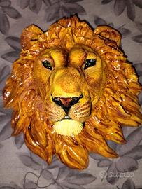 Vendo leone di gesso da poter appendere anche al muro, dipinto rigorosamente a mano in tutti i particolari.