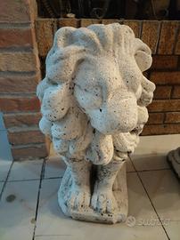 2 leoni in cemento da esterno. Uno ha leggermente la base rovinata