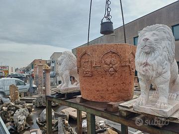 Fantastici Leoni in marmo rosa Portogallo Altezza 120 × 40 Prezzo per la coppia. Disponibilità di farli su misura con preventivo gratuito. Rispondiamo anche su Whatsapp