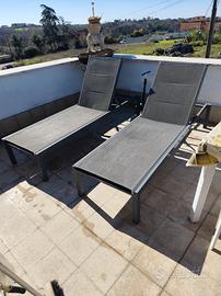 Vendo due lettini in alluminio leggerissimi in ottime condizioni utilizzabili sia per un giardino grande a bordo piscina oppure un terrazzo grande marca NATERIAL pagati 140 euro l'uno li vendo al prezzo di €35 l'uno.