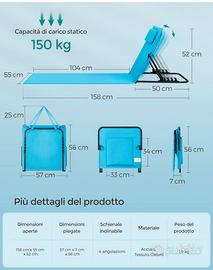 Lettini da Spiaggia, Sedie a Sdraio, Lettini Prendisole, Cuscino, Schienale Inclinabile, Portatile con Manico, per Campeggio Giardino Piscina, 158 x 55 cm