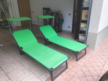 vendo 2 lettini con parasole, telaio alluminio preverniciato e seduta in plastica ad intreccio per avere seduta morbida.