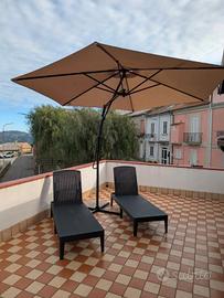 Vendo due lettini in resina colore antracite con schienale reclinabile 187,5x58 cm. I lettini sono stati usati pochissimo e tenuti in ottimo stato. Prezzo singolo 30€.