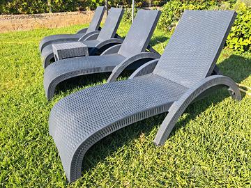 Vendo lettini prendisole per piscina o giardino in polipropilene rinforzato con fibra di vetro, schienale regolabile in 5 posizioni, forniti di ruote. Modello Fiji Siesta Exclusive. Singolo € 50 Prezzo trattabile su stock da 2 o da 12