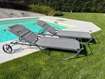 La struttura del lettino è classica con base curvilinea e ruote, ottimo anche come complemento a bordo piscina.