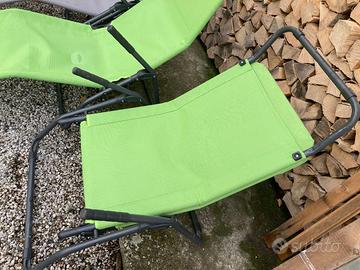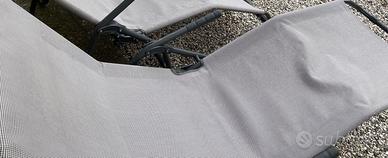 Lettino pieghevole e basculante, con braccioli, tessuto in rete traspirante con telaio nero, robusto e leggero, adatto a giardino/mare. Vendo insieme ( sono 3, due verdi e uno grigio) o singolarmente.