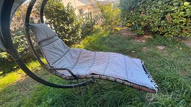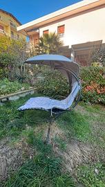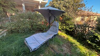 Lettino da esterno con materassino, cuscino e parasole. Colore grigio. Vendo per trasloco.