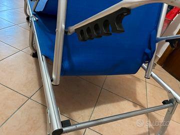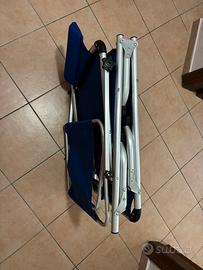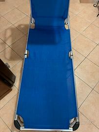 Lettino da esterno pieghevole in buone condizioni colore blu. Lunghezza aperto 180 cm,larghezza aperto 58 cm,lunghezza chiuso 75 cm. Ritiro a mano a Terracina,richiesta 25 euro