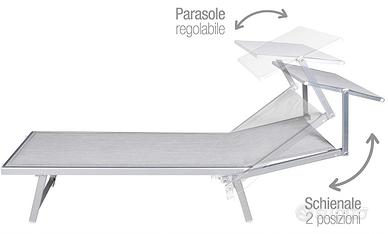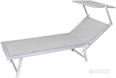 Classico lettino da mare con parasole, reclinabile in due posizioni e con gambe pieghevoli.