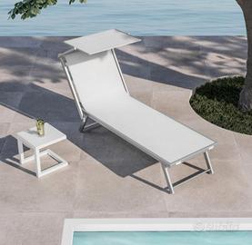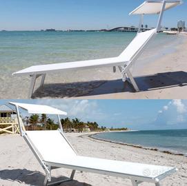 Classico lettino da mare con parasole, reclinabile in due posizioni e con gambe pieghevoli. La soluzione ideale anche a bordo piscina o in giardino. Struttura in tubo di alluminio a sezione quadrata mm 42x42 e telo in textilene. Disponibile Bianco, grigio, blu, beige. Dimensioni: 186x61x38 cm. Portata massima 120kg. Prezzo leggermente trattabile sull'acquisto di più quantità. Possibilità di spedizione con pagamento alla consegna.