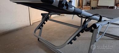 Lettino da mare, piscina o giardino come nuovo usato 2-3 volte. Pieghevole e salvaspazio per il trasporto, con maniglie, tettuccio parasole regolabile, schienale regolabile in 5 posizioni. Dimensioni (senza tettuccio parasole): 193 x 67 x 32 cm (L x L x A). Cuscino rimovibile e tasca in rete. Max. 110 kg. Ritiro Sarzana (SP), non si effettuano spedizioni. No perditempo.