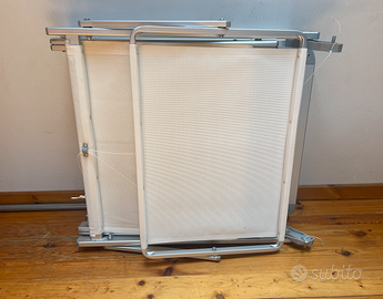 Lettino da sole pieghevole ,tessuto bianco e alluminio , condizioni perfette , usato un paio di volte, con scatola originale.h 37 cm