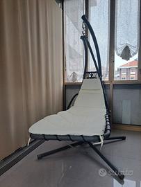Lettino a Dondolo da Giardino Amaca Poltrona Sospesa con Supporto Cuscino Con tettuccio parasole