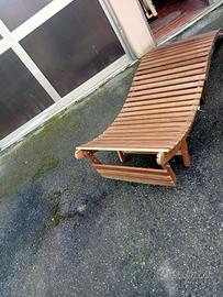 lettino in legno interamente chiudibile con maniglia in tessuto per essere trasportato.