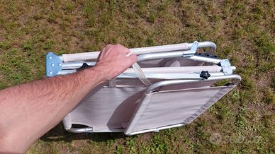 Vendo ultimo lettino come nuovo utilizzato in un paio di occasioni e ritirabile in Ferrara città, adatto per spiaggia e giardino. Ancora con cartellino, in alluminio, richiudibile salvaspazio e trasportabile con maniglia, schienale regolabile, parasole, portata max 120 kg.