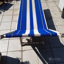 Lettino mare in legno vintage. Telo in ottimo stato. Legno da verniciare (ma può stare anche così). Ideale per prendere il sole in terrazzo o nel giardino. Pesa una decina di chili circa. Solo ritiro a Milano zona quartiere Adriano.