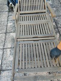 sdraio in legno tek per esterno veramente robusto e confortevole con alzata per le gambe, si vende insieme alla fodera di copertura. se acquistato insieme all'altro sdraio che ho in vendita ,sconto di 20euro. trasporto in asti città 19euro