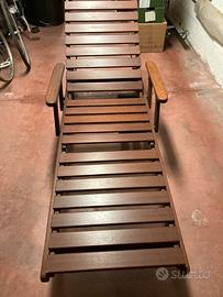Vendo lettino in legno a stecche adatto per giardino. Testata e piano reclinabili in varie posizioni. Dotato di ruote che ne agevolano lo spostamento No spedizione, ritiro in loco