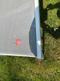 Lettino OCEAN - STRUTTURA: alluminio colore bianco - TESSUTO: texfile colore grigio Usato ma in buone condizioni, resistente. Il prezzo indicato è per singolo pezzo. Disponibili: 6 pezzi (prezzo da concordare)