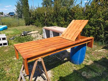 Lettino prendisole in abete 198x60x25cm con schienale regolabile in altezza. Pezzi unici fatti a mano eleganti e funzionali, possibilità di colori diversi. Ritiro a mano zona Signa.