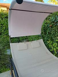 Lettino doppio da esterno, con telo parasole. Perfetto per rilassarsi in giardino, terrazzo e piscina