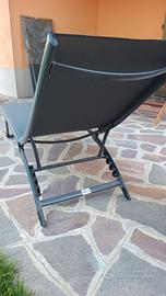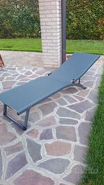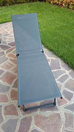 Telaio in alluminio Tela plastificata Schienale recrinabile in 4 posizioni fino a diventare quasi orizzontale Colore Grigio Antracite Misura 174 lunghezza e 50 larghezza peso 4,5 kg circa Usato pochissimo e tenuto al chiuso