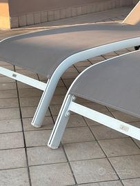 La struttura è in alluminio, con finitura in bianco, un materiale robusto e durevole nel tempo. La seduta in textilene taupe è resistente, confortevole e semplicissima da pulire. Lo schienale è reclinabile, in 4 posizioni, per darti sempre il massimo comfort.